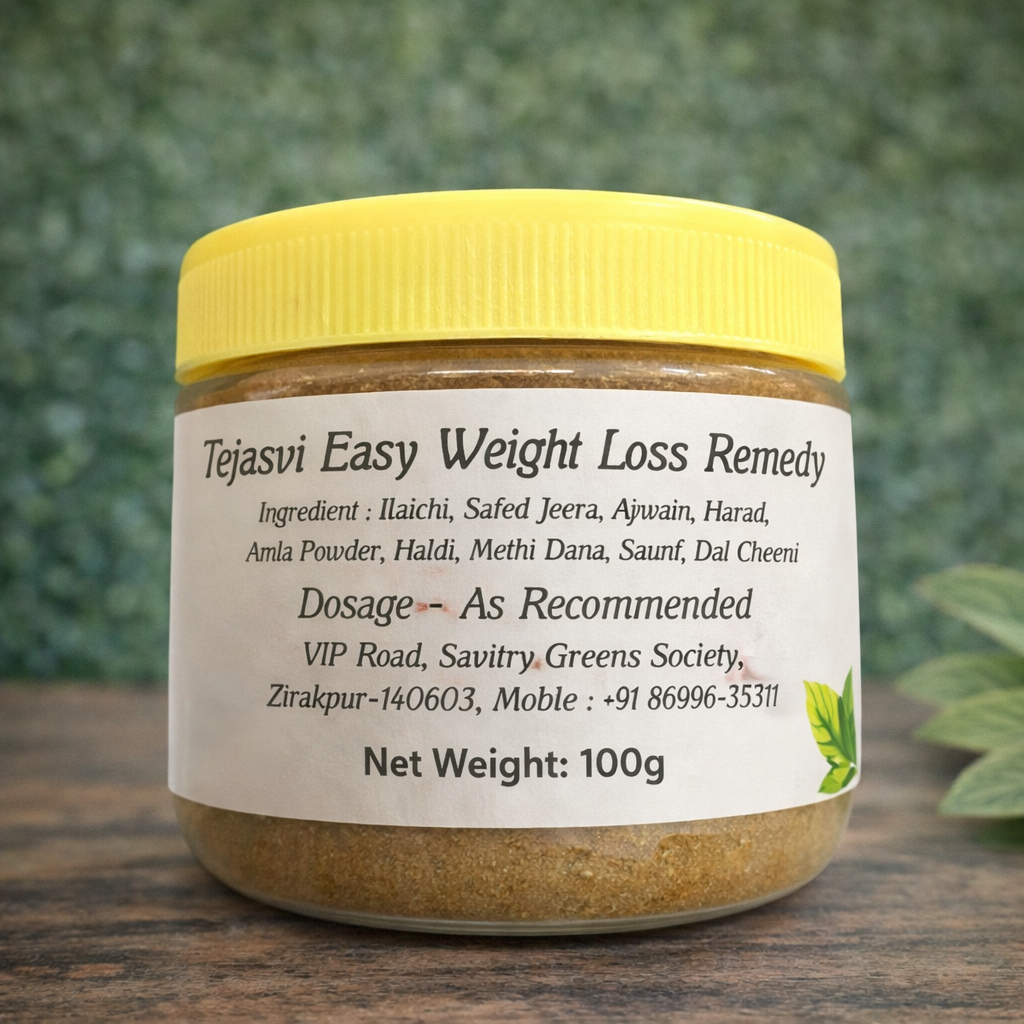 Tejasvi Easy Weight Loss Remedy is a natural herbal blend formulated to support healthy weight management, improve digestion, and boost metabolism using time-tested Ayurvedic ingredients.