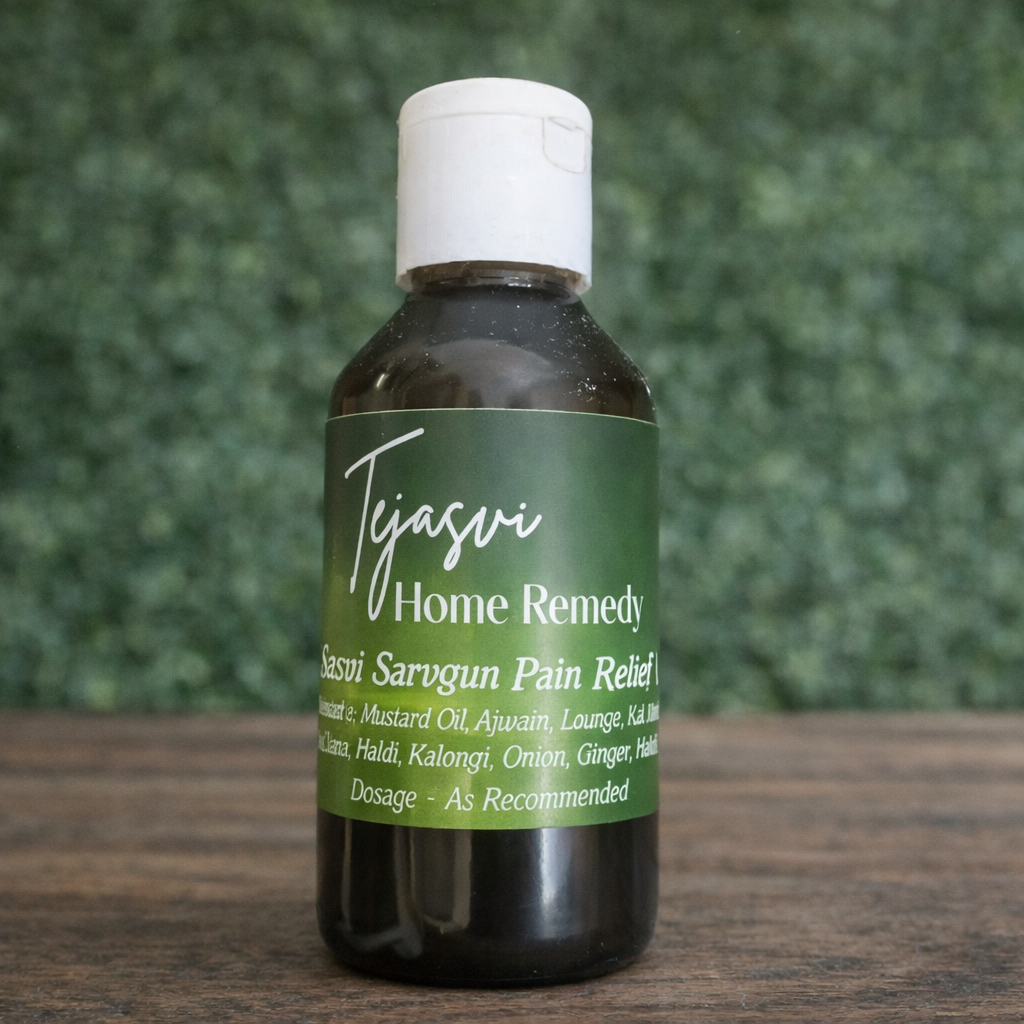 Tejasvi Sarvgun Pain Relief is a natural herbal oil formulated to provide fast, effective relief from joint, muscle, and body pain using traditional Ayurvedic ingredients.